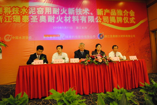 5月11日,瑞泰科技水泥窯用耐火新技術(shù)、新產(chǎn)品推介會暨浙江瑞泰圣奧耐火材料有限公司揭牌儀式在浙江長興國際大酒店隆重舉行。瑞泰科技股份有限公司董事長曾大凡致歡迎詞,中國建筑材料聯(lián)合會副會長、中國水泥協(xié)會會長雷前治先生,中國建筑材料集團有限公司總經(jīng)理、中國建…